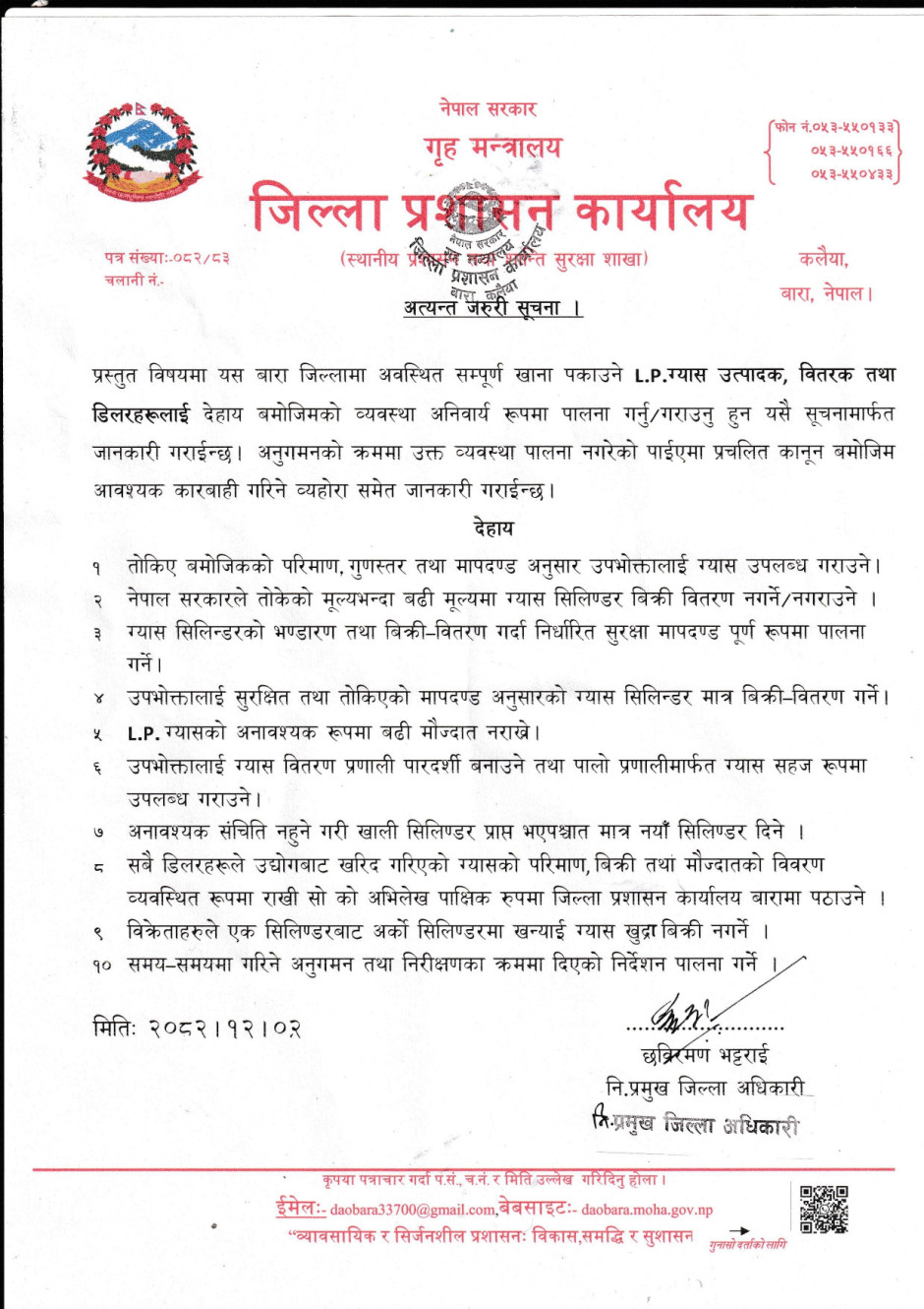 © सर्वाधिकार सुरक्षित जिल्ला प्रशासन कार्यालय, वारा