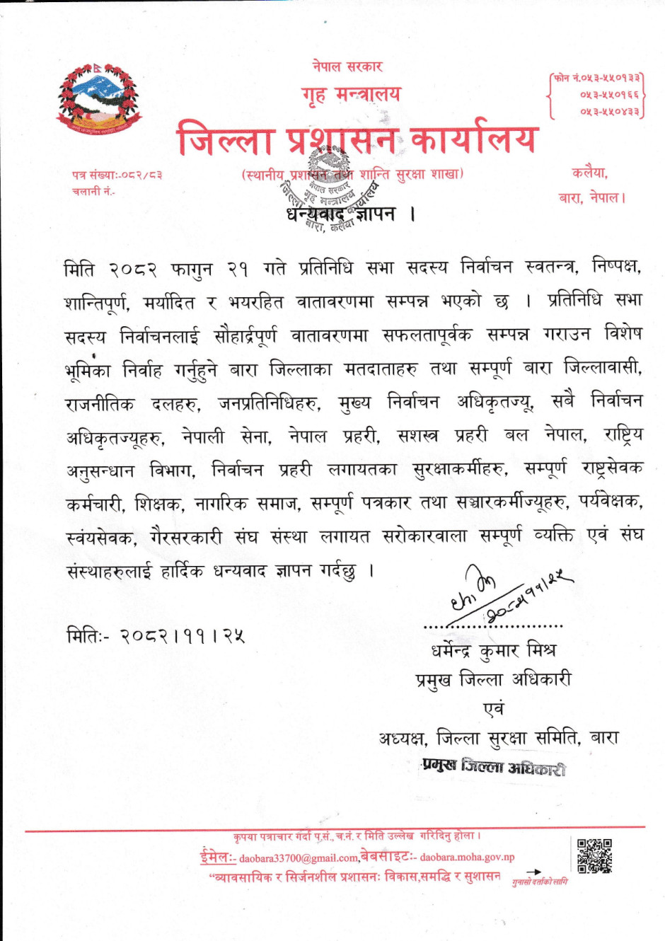 © सर्वाधिकार सुरक्षित जिल्ला प्रशासन कार्यालय, वारा .